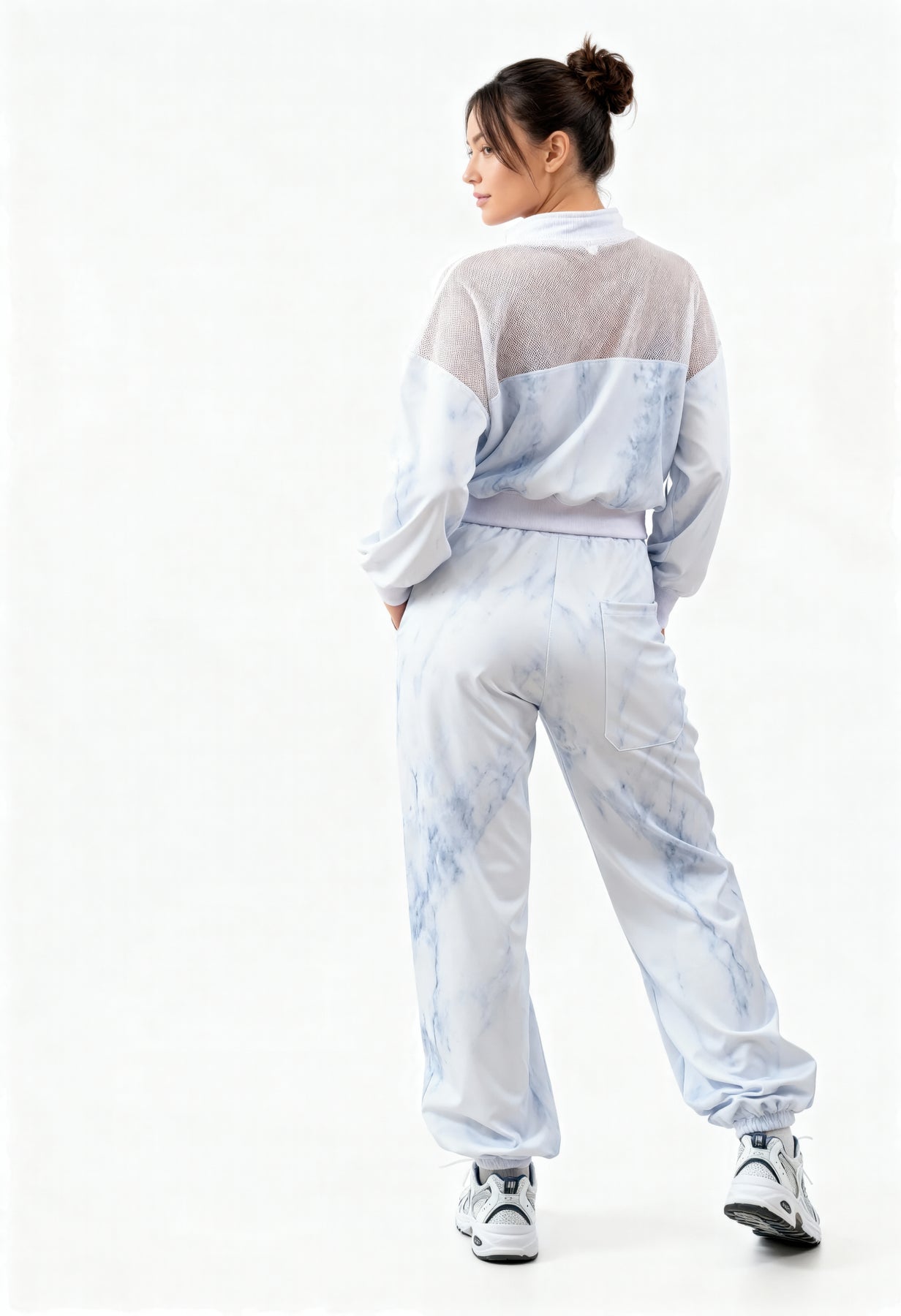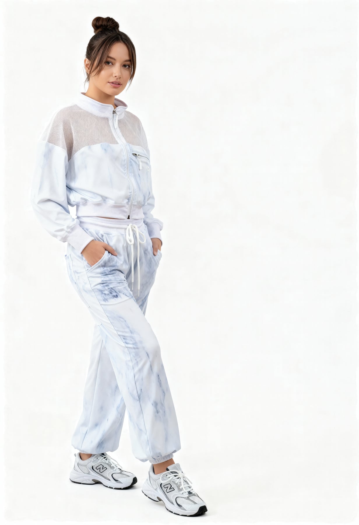 Express your style while staying fit with our Ahlyza Activewear Set! Made from a blend of 80% polyester and 20% spandex, this set offers a comfortable and stretchy fit. The top features a stylish knitted design on the upper part, and a side seam zipper pocket that enhances its breathability and functionality respectively. The jogger pants comes with an elastic waist and drawstring tie, along with side pockets for your essentials. Ahlyza's fabric is also dyed in a hue of blue, that gives an accented & overall visually-appealing look that stands out in the crowd. Perfect for workouts, jogs, a stylish airport look, or just a casual hangout. Available in sizes from small to large.