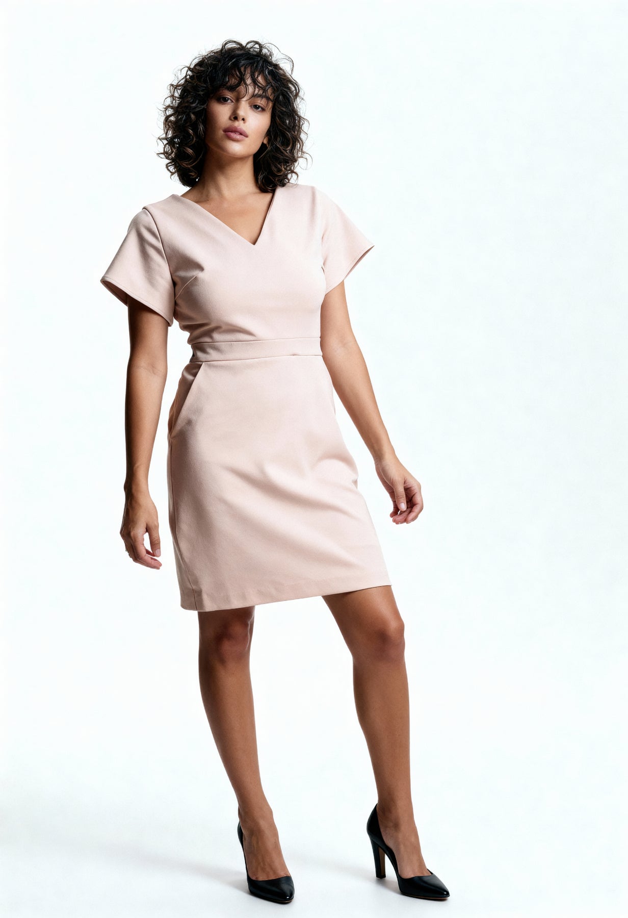 Smart and Chic Light Peach Stretchable Corporate Dress