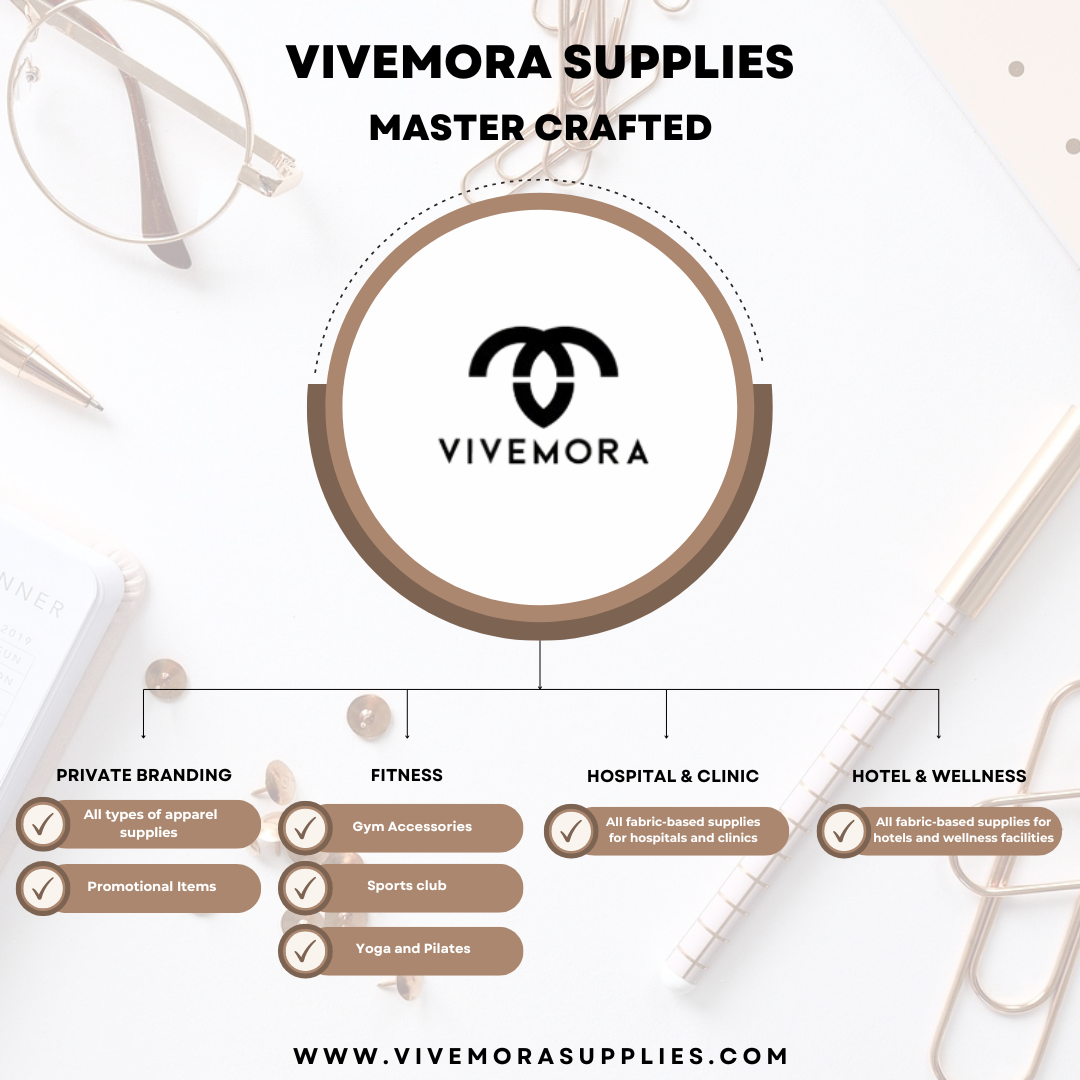 After four years, my original brand, MYKA, evolved into VIVEMORA, expanding our vision and securing our patent and trademark. This growth also led to the creation of VIVEMORA Supplies, offering custom-designed textile and fabric-based products for businesses—from sports clubs, gyms, and wellness centres to hotels, hospitals, and private labels. Whether through our own designs or custom requests, we help businesses of all sizes come to life by adding logos and personal touches to the products they need.