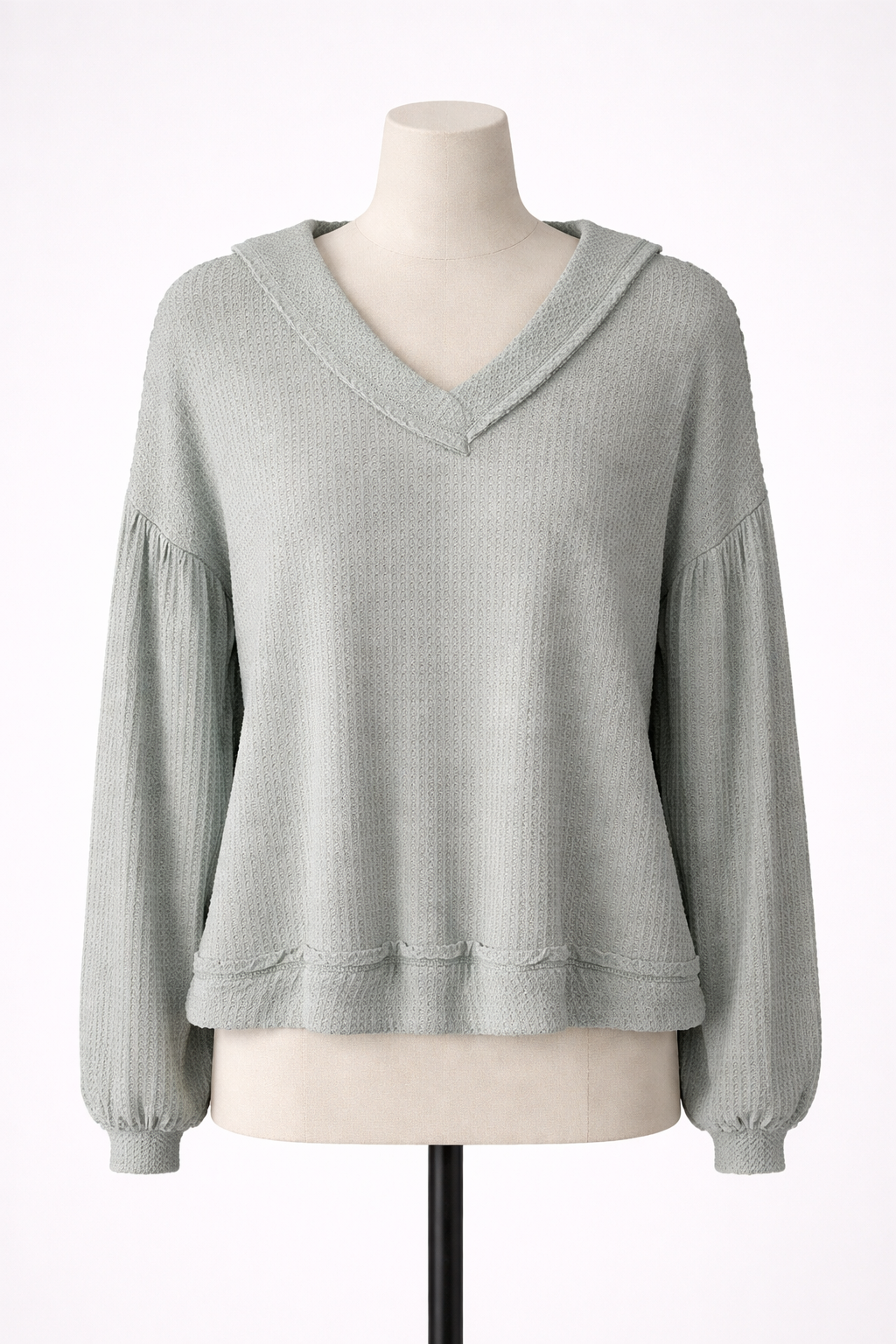 A super-soft relaxed pullover with a V-neck and long sleeves. Lightweight with a comfortable fit, ideal for everyday wear and easy layering.
